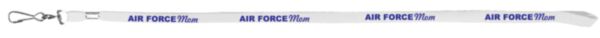 Proud Air Force Mom Silk Screen Blue Imprint on J-Hook Tubular Lanyard