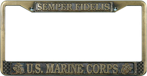 Semper Fidelis U.S. Marine Corps Antique Brass License Plate Frame