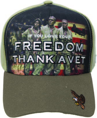 Thank-A-Vet Khaki Bill Sublimation Design Multiple Position Embroidery on Ball Cap